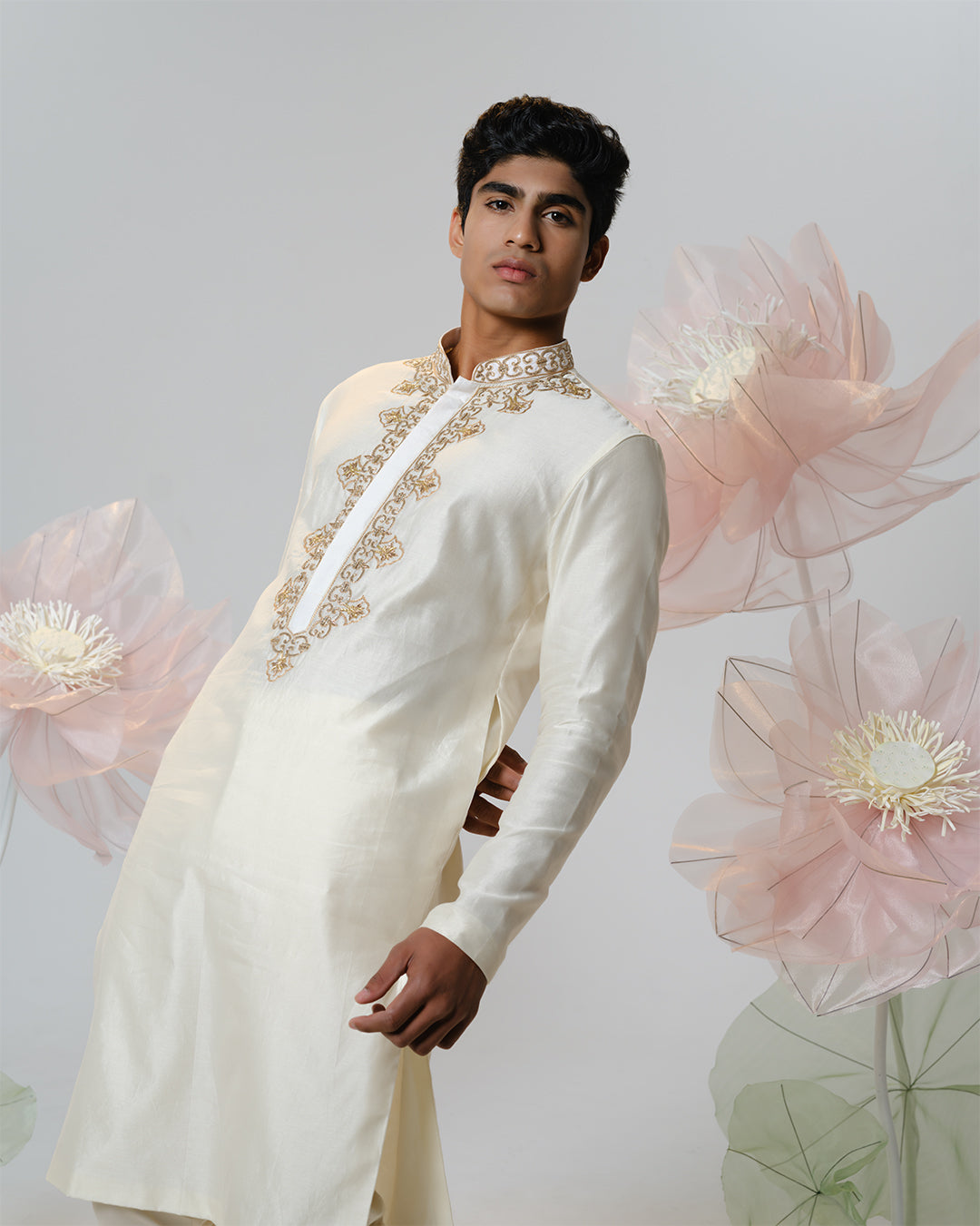 WHITE CHADARI KURTA WITH EMBROIDED TUCK PATI